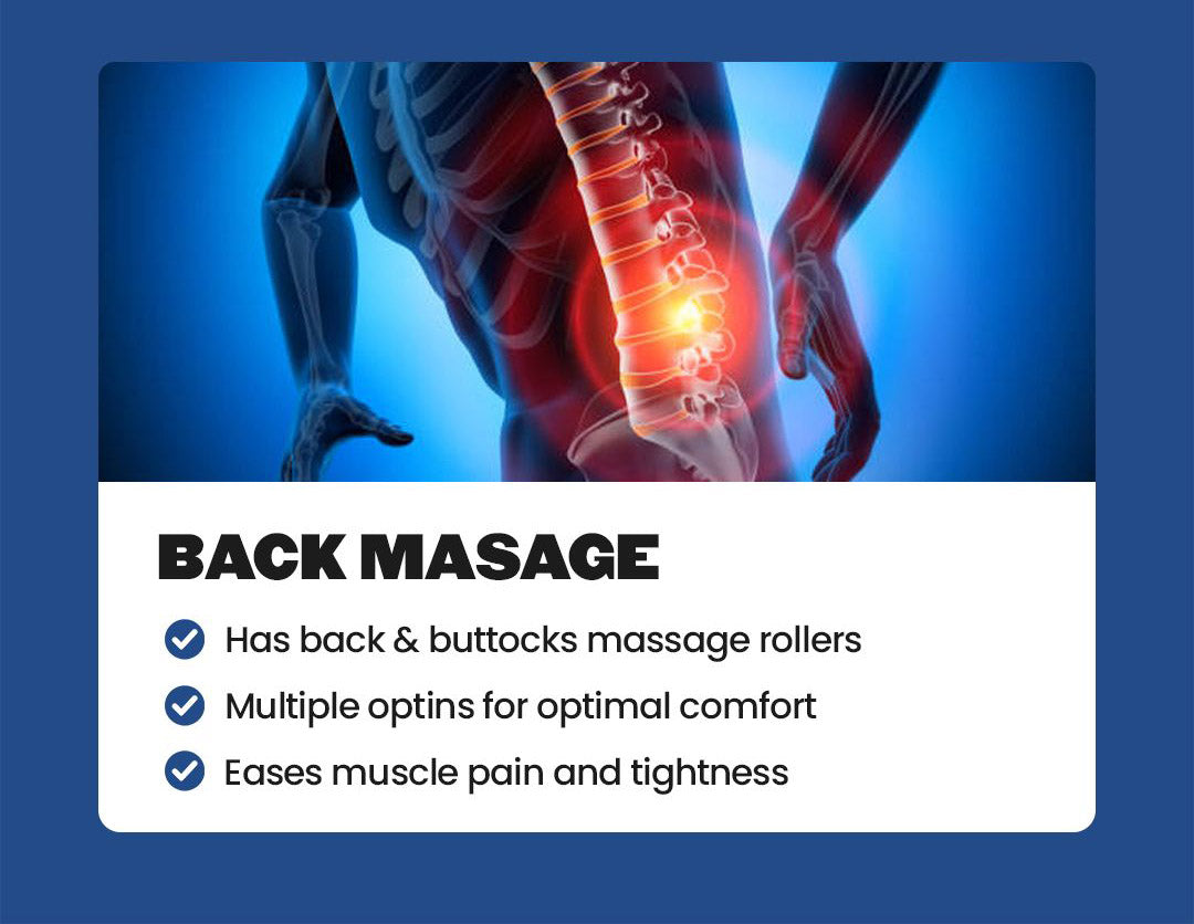 With advanced features like buttocks rollers for targeted relief, a U-shape pillow for neck support, leg belts, and dual-leg airbags for complete lower body care, our chairs transform every session into a personalized escape.