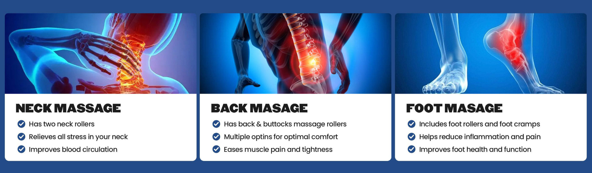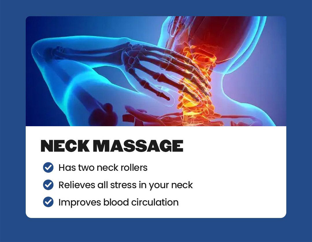 The Bliss model is equipped with four massage rollers: two on the neck and two on the lower back.Adjustable Feet