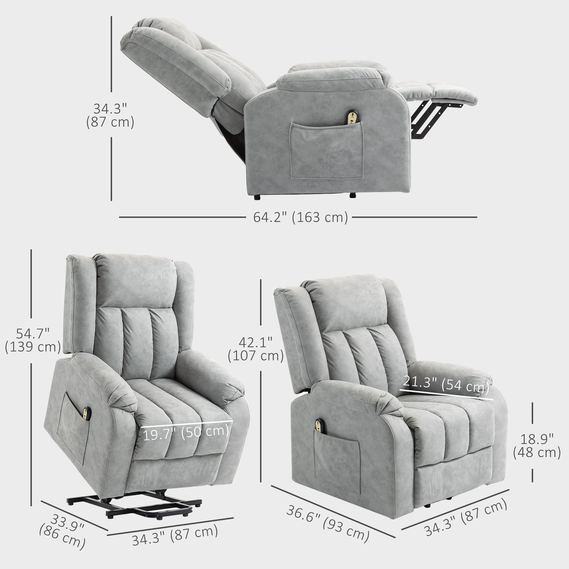 Microfibre Electric Recliner-Light Grey